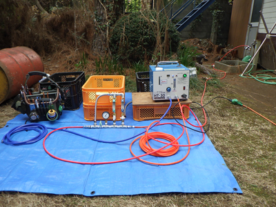 機材を設置して、水素発生機から水素ガスを生成し、蛇口から配管内へ水素ガスを送り込みます。 |