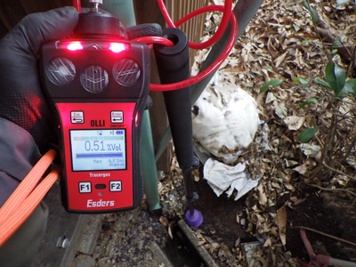 そこで音聴調査では漏水箇所が発見できなかった場合は、トレーサーガス工法による漏水探索をご提案しています。 |