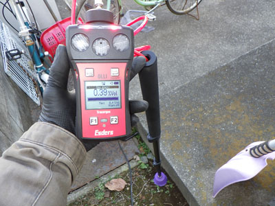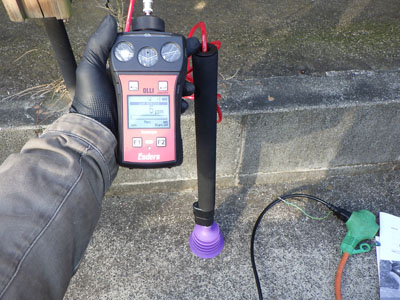 探索を開始し、漏水箇所にくると探知機が反応します。 |